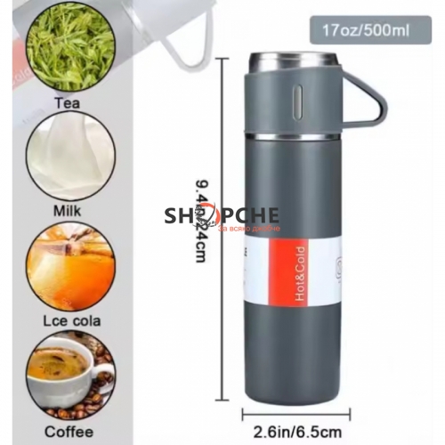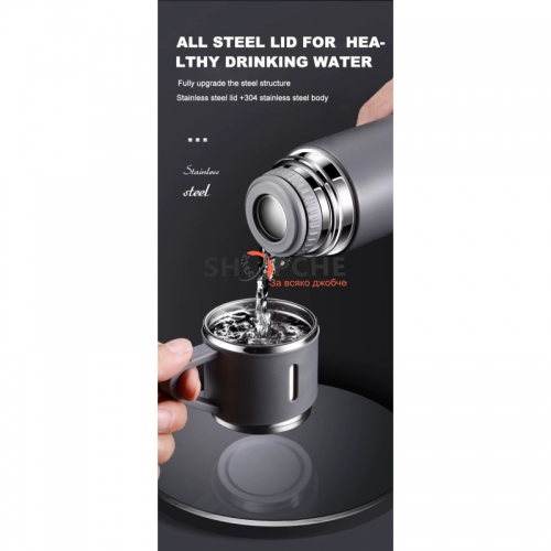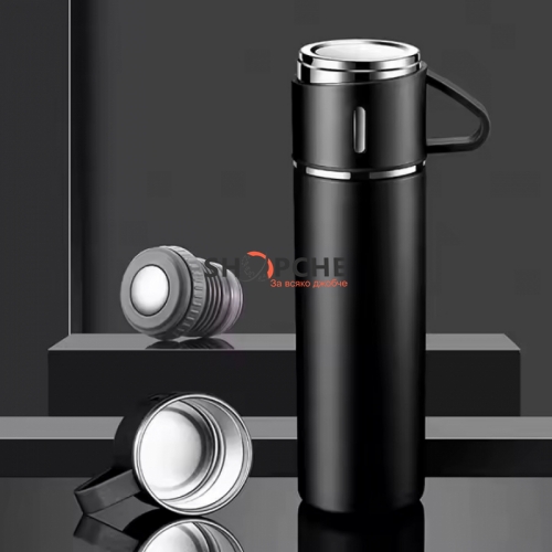 Запази напитките си топли или студени с елегантния термос от неръждаема стомана (модел 500 мл/17oz) с включена чаша. Създаден за динамичния начин на живот, този термос е идеалният спътник – независимо дали си на работа, в училище, на поход, къмпинг, плаж или в офиса.
