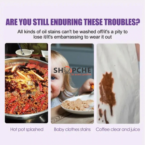 Бързо Почистване на Петна и Петно Почистване може да реши всяка проблема с петна веднага! Смесете и изсушете - в най-кратко време дрехите ви ще се върнат към своя оригинален вид, толкова е просто. Майките вече няма да се тревожат за замърсени дрехи.