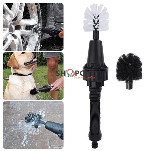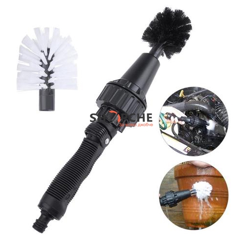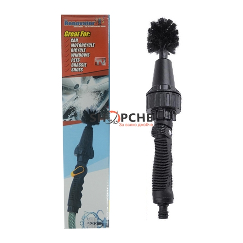 Уникална, полезна и забавна мултифункционална спрей четка за почистване The Renovator може да се използва като детайлна четка за почистване на автомобили, велосипеди, мотоциклети, мебели за вътрешни пространства, сайдинг, барбекюта и др.