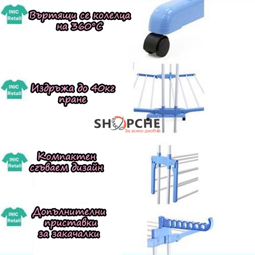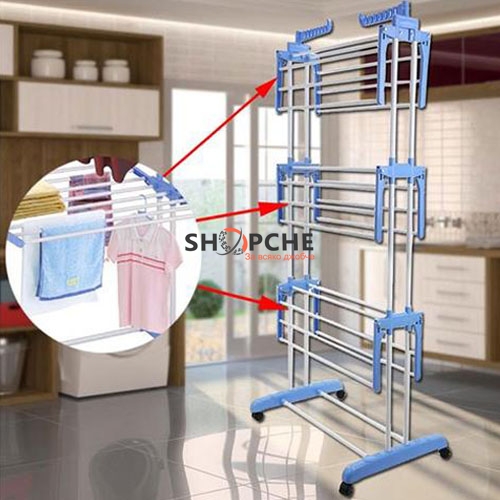 👉 Присъедини се към Viber общносттаПредставяме Ви практичният сушилник за дрехи с 3 нива и опора за закачалки.