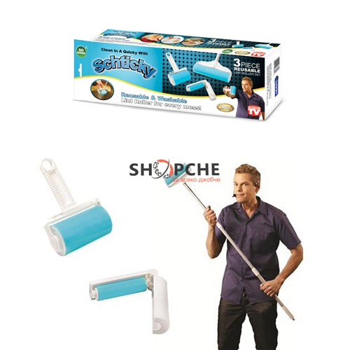Универсалния почистващ комплект-Sticky Buddy Pro състоящ се от три части - за дрехи,косми,домашни любимци,седалки на автомобили,мебели.