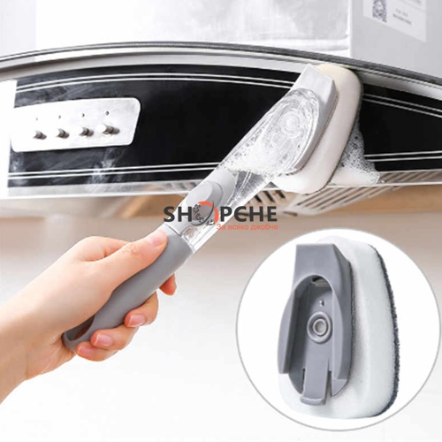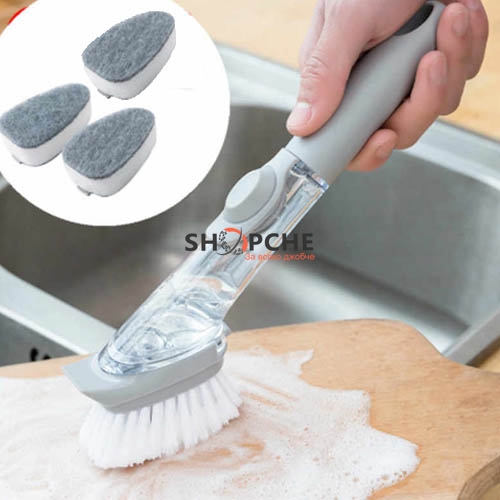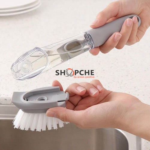 Четката е с дозатор за препарат, което я прави изключително удобна за работа.