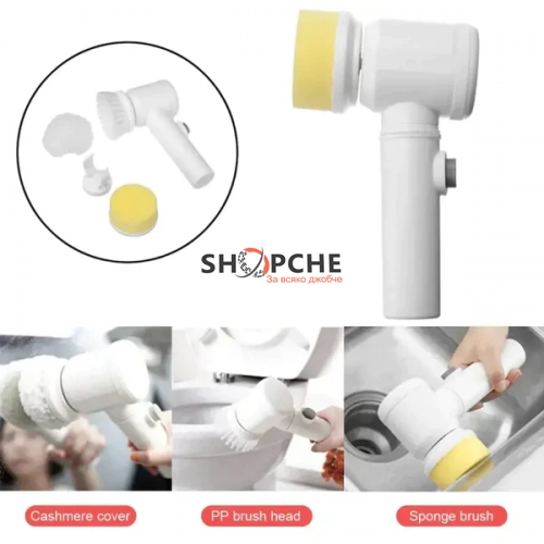 Кажете сбогом на упоритите петна с Мултифункционалата Четка за почистване Magic Brush 5 в 1 с вградена батерия и USB