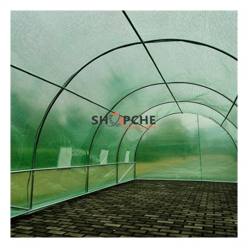 Покривалото е изработено от високотехнологична полиетиленова материя, като на надлъжните страни са разплетени 8 броя отвори (прозорци), които служат за контрол на температурата на въздуха на оранжерията.