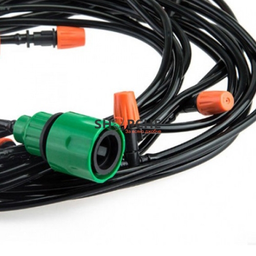 Маркуча е с дължина по избор (10м,15м, или 20м). Системата е снабдена с адаптор и конектор за чешма.