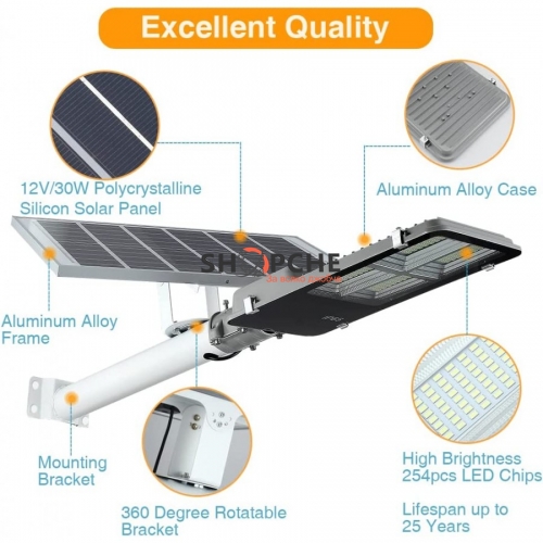 Автоматично превключване при здрач и разсъмване. Дистанционно управление, което може да се използва за настройване на продължителността на светене до 3, 5 или 8 часа, а яркият режим - до полу-светъл или напълно ярък режим. LED прожектора, е водоустойчив прожектор с IP степен на защита IP66 и е подходящ за осветяване на вътрешен двор, билборд, градина, пътека, гараж и др.