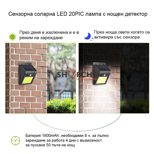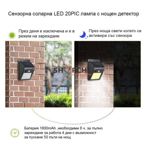 👉 Присъедини се към Viber общносттаПредставяме Ви Сензорна соларна LED 20PIC лампа с нощен детектор