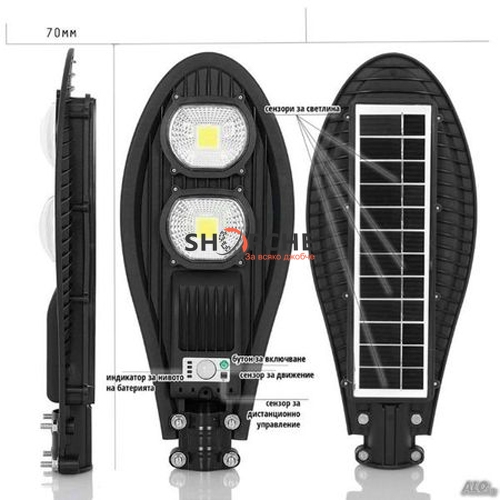 👉 Присъедини се към Viber общносттаСистемата е изцяло автономна, през светлата част на деня се зарежда батерията, а веднага след като се стъмни осветлението се включва автоматично, благодарение на сензорите които са в соларния панел.Соларната улична лампа е интелигентна система за външно осветление, която интегрира най-добрите енергоспестяващи части – фотоволтаичен панел, осветително тяло, сензор, контролер и литиева батерия, всичко това в една кутия.