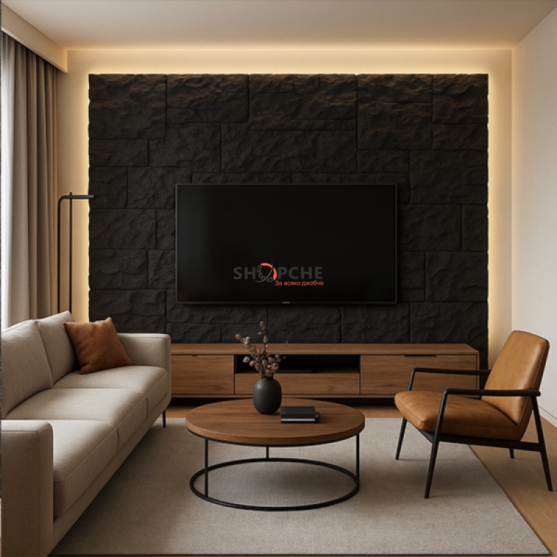 👉 Присъедини се към Viber общносттаПодчертай своя модерен интериор с този стилен декоративен полиуретанов панел с имитация на скала в черен цвят. Реалистичната текстура на скала и наситеният тъмен нюанс придават на стените дълбочина, контраст и луксозна визия, подходяща за акцентни зони, дневни, офиси, заведения, хотели и дизайнерски пространства.