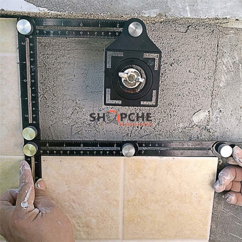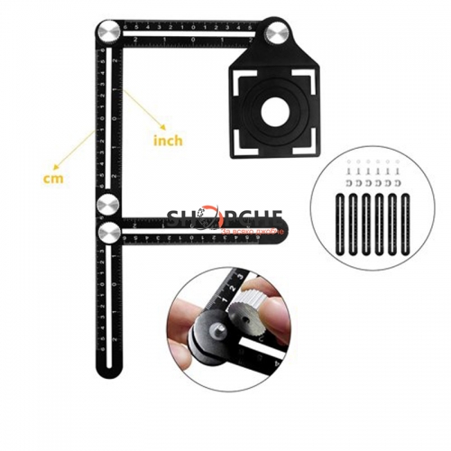 Първо, поставете инструмента върху всяка повърхност и настройте шестте линийки до желаната форма.