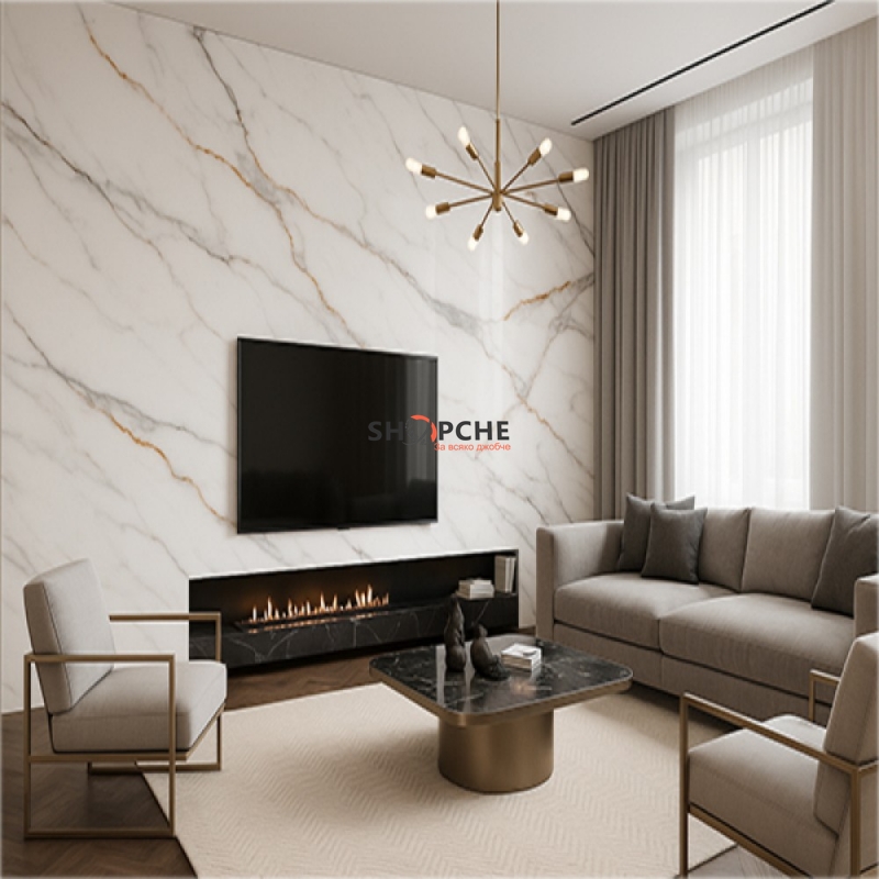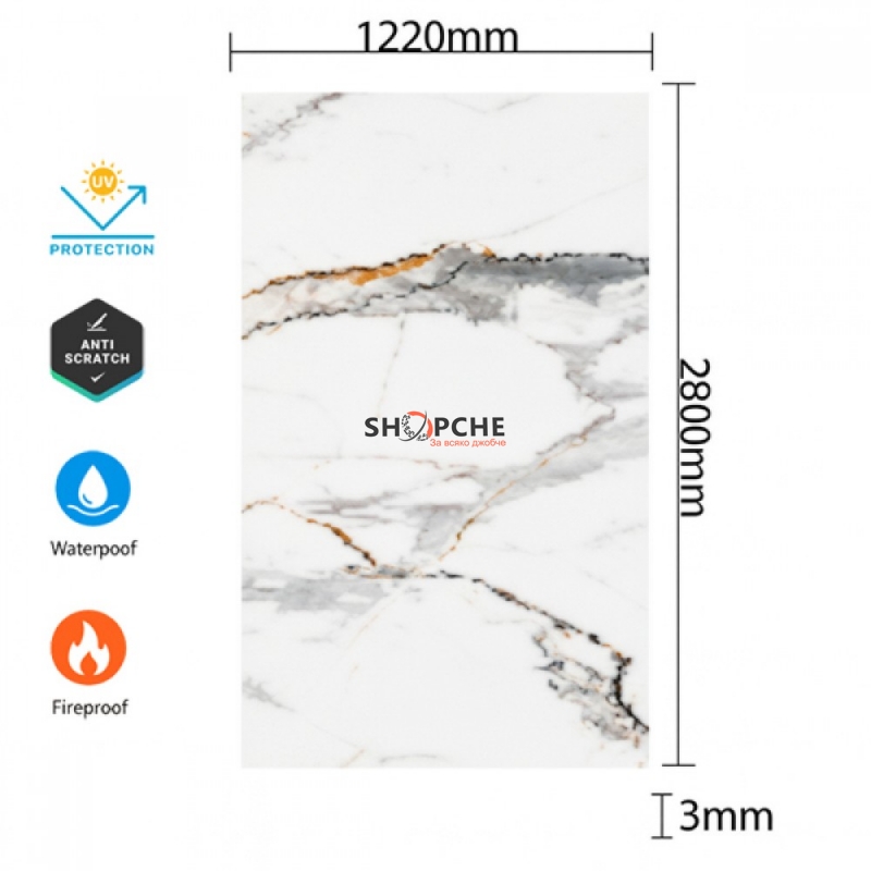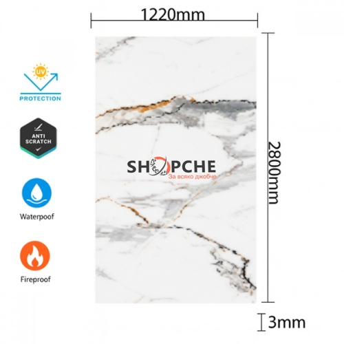 👉 Присъедини се към Viber общносттаВнеси усещане за елегантност и стил в своя интериор с този PVC панел с мраморен ефект – Бял мрамор Голд Грей. Фините сиви и златисти жилки върху изчистен бял фон създават изискан и модерен акцент, подходящ за дневни, кухни, офиси, хотели, бани и търговски пространства.
