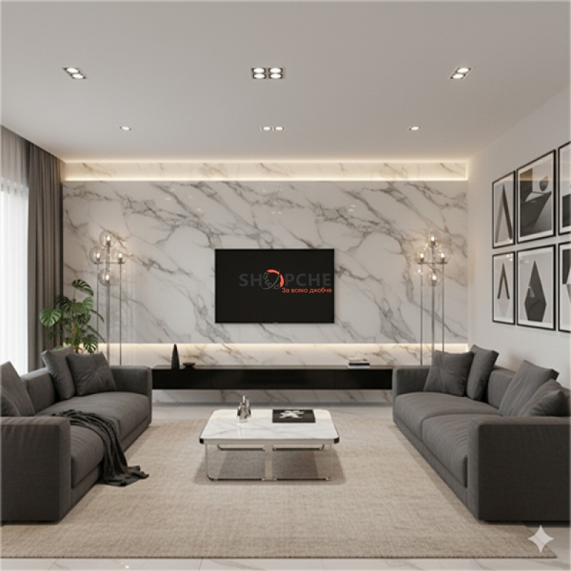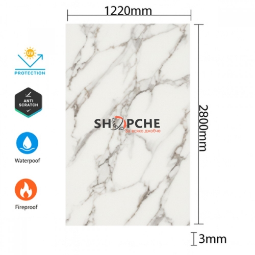 👉 Присъедини се към Viber общносттаСъздай изчистен и елегантен интериор с този стилен PVC панел с мраморен ефект, пресъздаващ естествената красота на наситен бял мрамор. Неговата изтънчена визия придава усещане за простор, светлина и лукс, което го прави идеален избор за дневни, кухни, бани, офиси, хотели и търговски помещения.