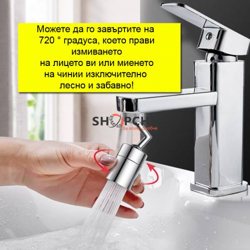 Можете да го завъртите на 720 ° градуса, което прави измиването на лицето ви или миенето на чинии изключително лесно и забавно!