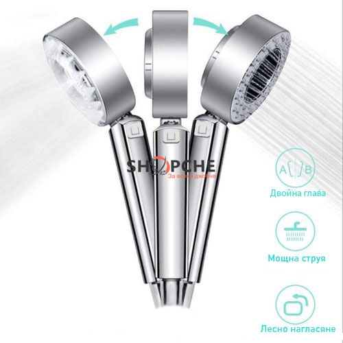 👉 Присъедини се към Viber общносттаПредставяме Ви иновативната двустранна душ слушалка, с която ще превърнете къпането в истинско забавление!