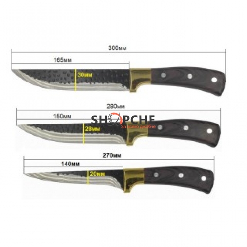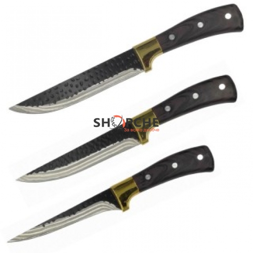 Комплект китайски кухненски ножове 3 броя. Притежават красив и елегантен дизайн, както и изключително удобна ергономична дръжка. Това е набор от трите най-използвани ножа в ежедневието от всяко домакинство.