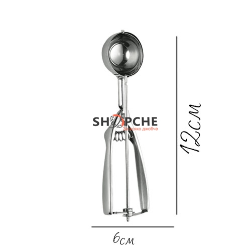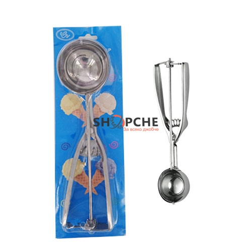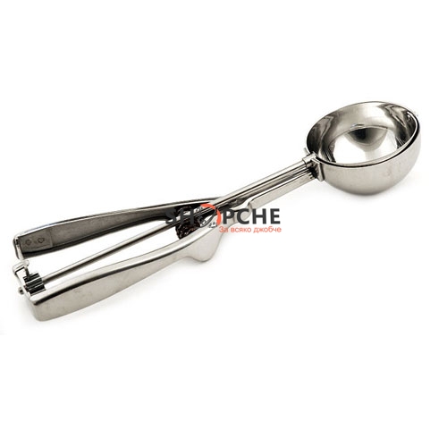 Лъжица с пружинен механизъм който позволява с едно движение да напражите перфектната топка сладолед,дори млечна или руска салата!