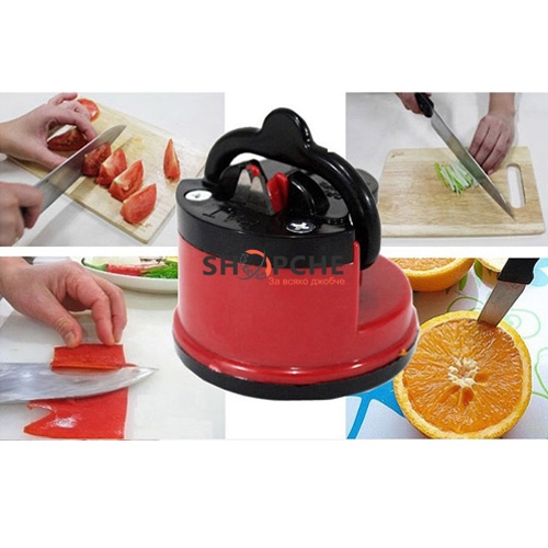 👉 Присъедини се към Viber общносттаПредназначено е за заточване на ножове от всякакъв вид. Точилни камъни – твърд сплав ВК-8. Държи се за равна, гладка и повърхност с помощта на гумирания вакуум. Снабдено е с метална насочваща за изравняване на платното на ножа по време на заточването..