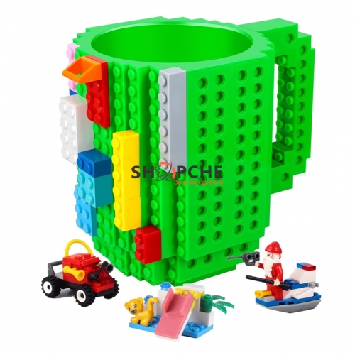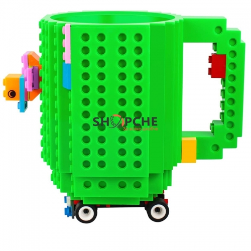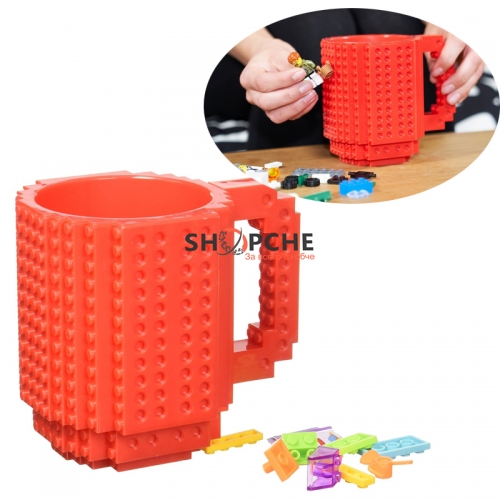 Чаша с външна повърхност, съвместима с повечето части на LEGO, PixelBlocks, Mega Bloks, KRE-O, K'NEX Bricks и други конструктори.