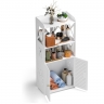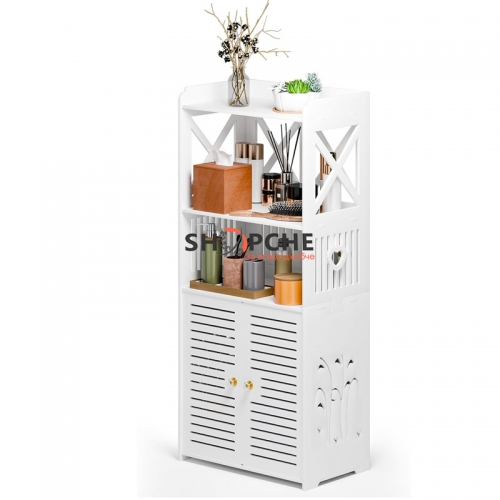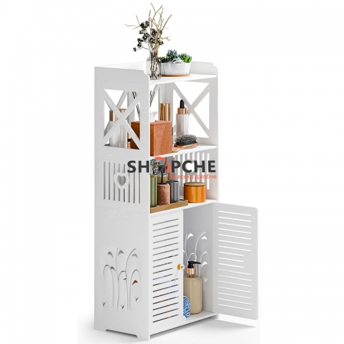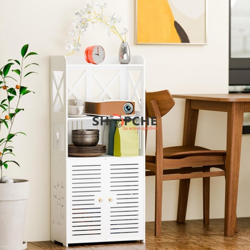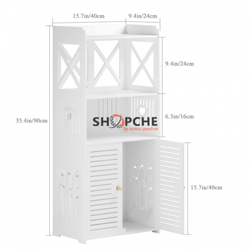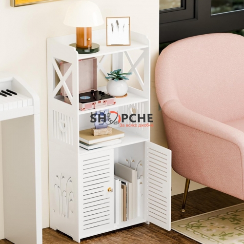 Разполага с 3 удобни рафта, и шкафче за скрито съхранение.