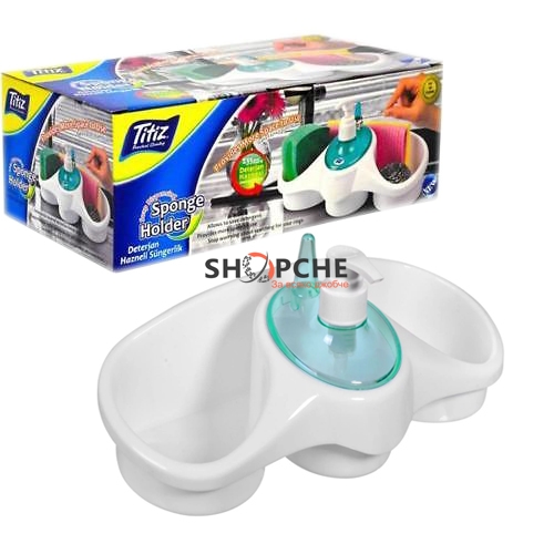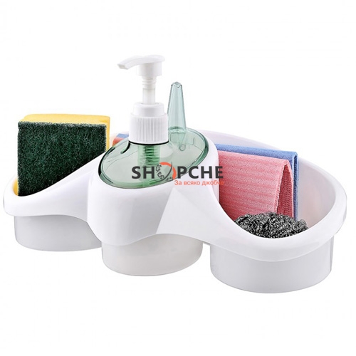 С 2 отделения за съхранение на гъби и телчета и специално пригодено отделение с дозатор за течен сапун.