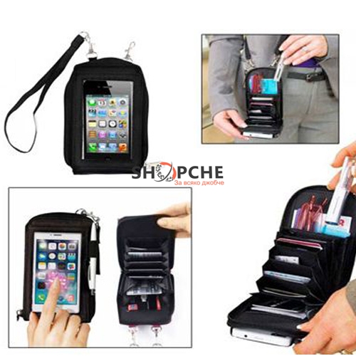 Към чантичката получавате и удобна каишка, с която можете да носите Touch Purse на рамо, или да закачите на ръката, китката и кръста си.
