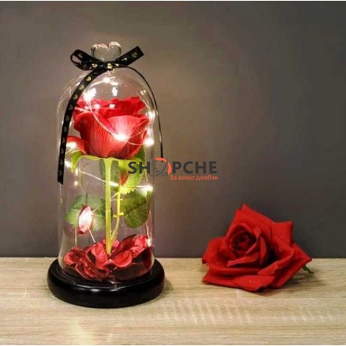 Превърнете момента във вечен спомен с този изискан и уникален подарък - Роза в Стъкленица с LED Светлина!